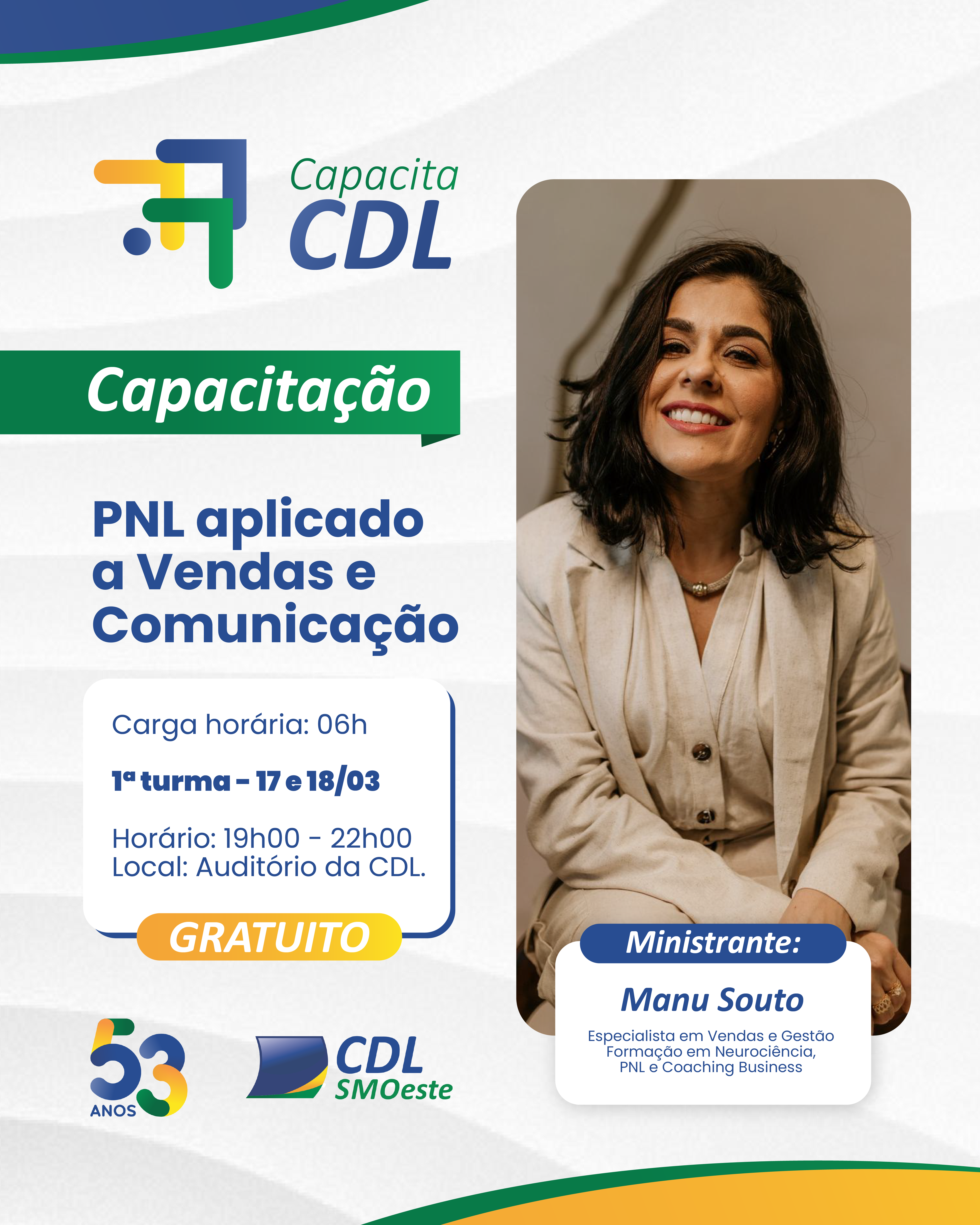 A Programação Neurolinguística (PNL) é uma metodologia prática e comprovada que auxilia pessoas e equipes a melhorarem sua comunicação, comportamento, tomada de decisão e resultados. Este treinamento foi desenhado especialmente para empresários, gestores e colaboradores do comércio, considerando os desafios atuais de vendas, relacionamento com clientes, liderança e inteligência emocional.