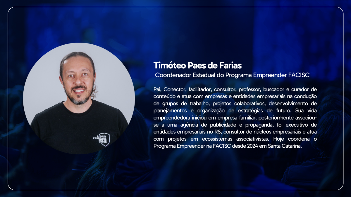 15h45 – Palestra com Timóteo Paes, Coordenador Estadual do Programa Empreender FACISC