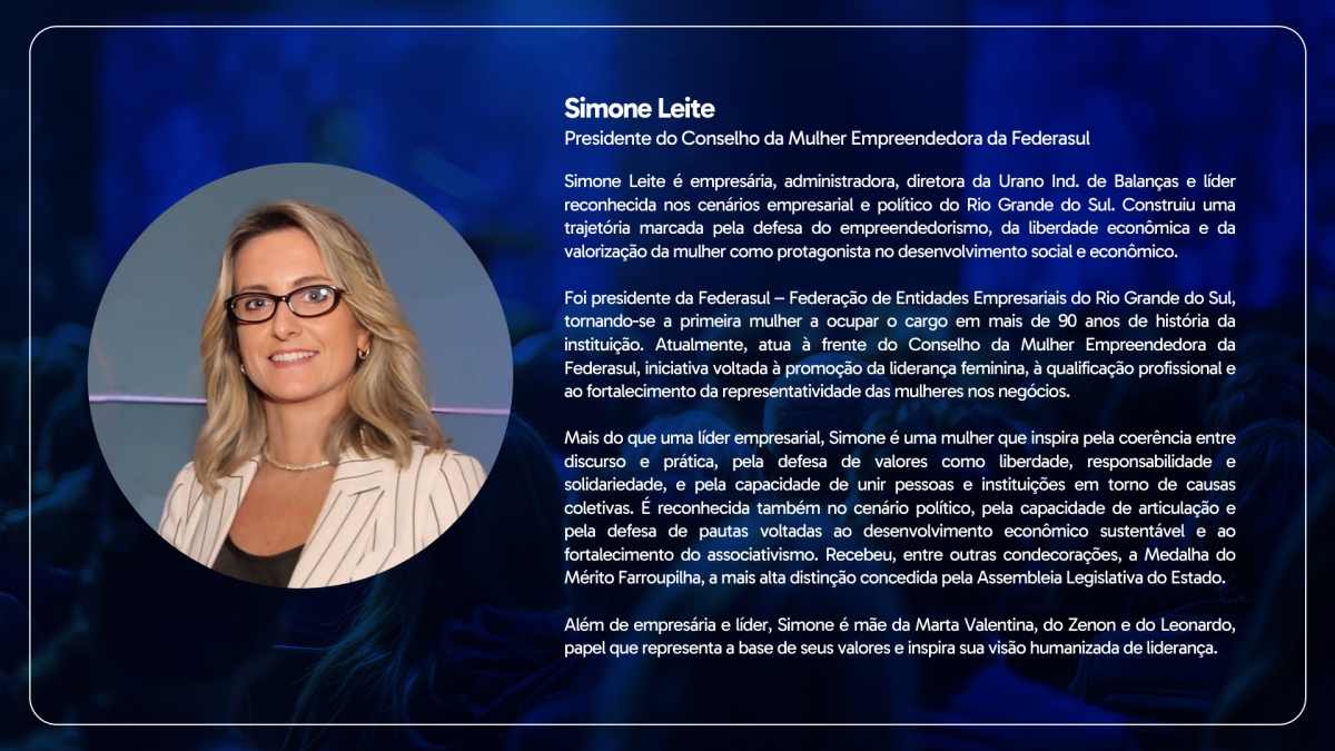 13h45 – Palestra com Rodrigo Costa, Presidente da Federasul e Simone Leite, Presidente do Conselho da Mulher da Federasul