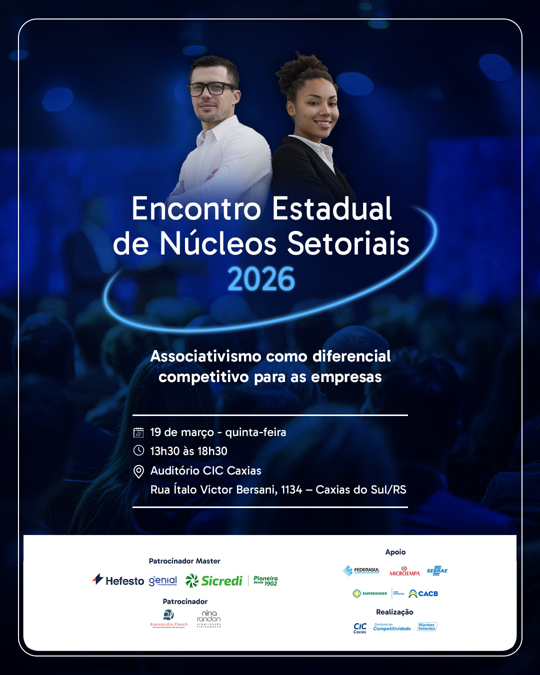 Encontro Estadual de Núcleos Setoriais reúne representantes de núcleos empresariais, entidades e lideranças que atuam diretamente na articulação, gestão e fortalecimento dos setores produtivos. O evento estimula conexões qualificadas, a troca de experiências e o alinhamento estratégico entre diferentes regiões, fortalecendo a cooperação, o protagonismo dos núcleos e a construção conjunta de soluções para o desenvolvimento econômico.