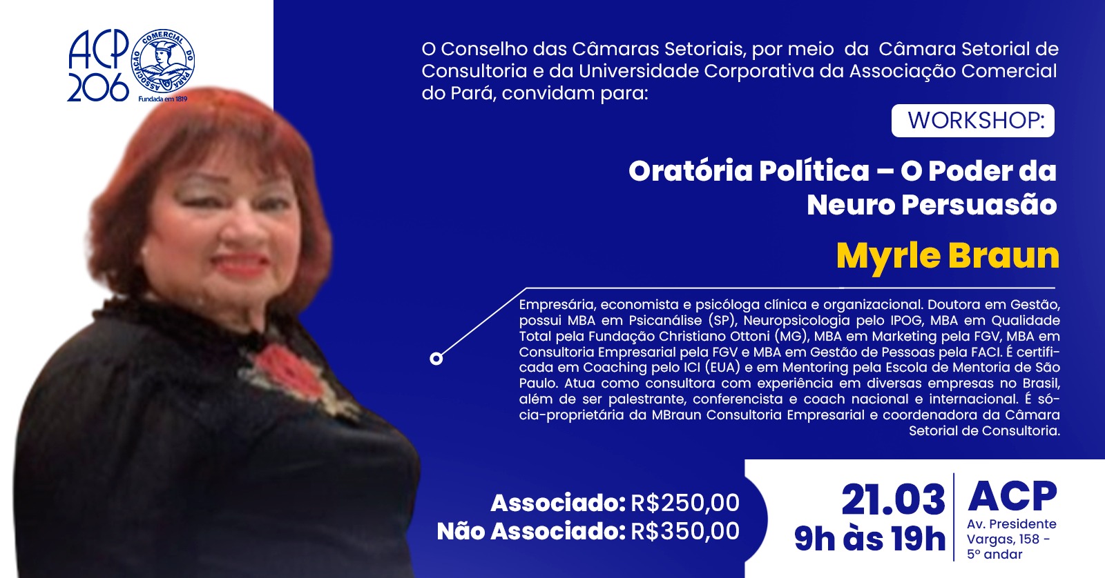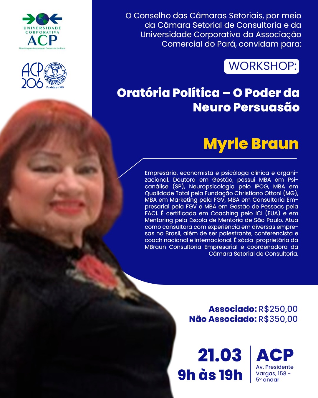 O Conselho das Câmaras Setoriais, por meio da Câmara Setorial de Consultoria e da Universidade Corporativa da Associação Comercial do Pará, convidam para o Workshop